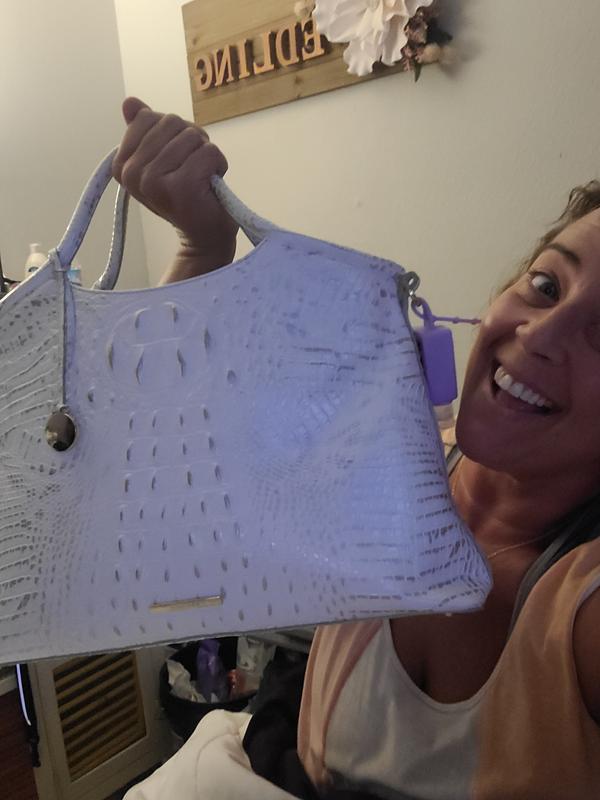 The Small Caroline is a great bag to carry for daily wear. It has space for all your essentials plus some. Using as a crossbody it fits just perfect and looks fantastic. This bag is much lighter then most Brahmins!!!