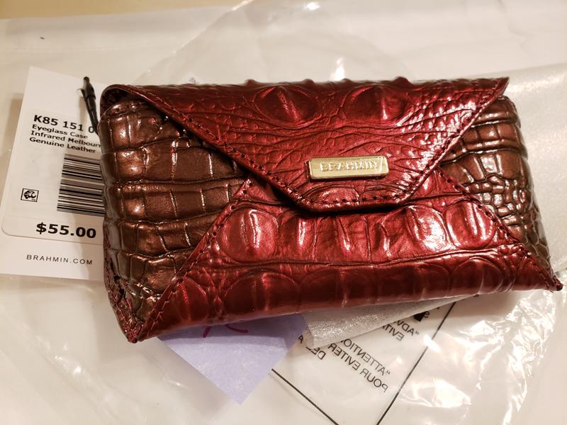 I love Brahmin products and own many. I was excited to see the glass case. I was going to order two and glad I didn’t. The purses have a magnetic closure which I assumed the glass case would have as well. It has a snap closure. Which means I have to squish the case and my glasses to get it to close. I really wish it was the magnetic closure.