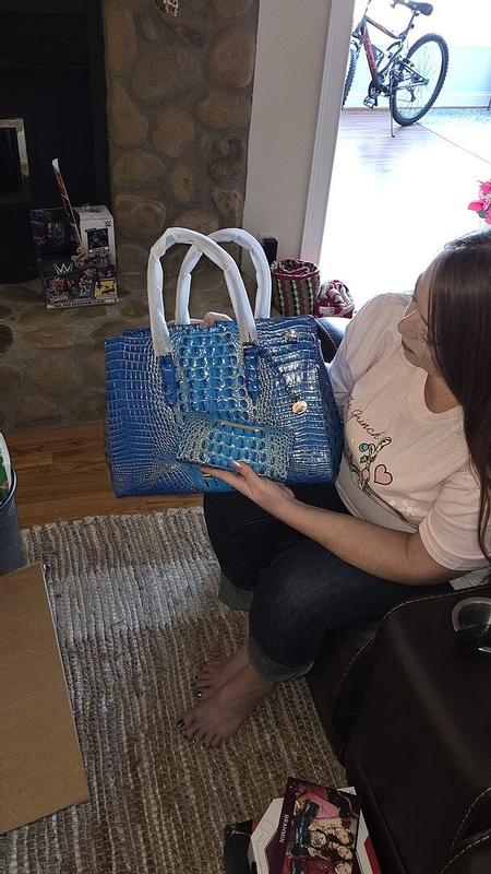 This bag is an anniversary gift. The color is stunning and I love the size. I have received multiple compliments from strangers on my handbag.