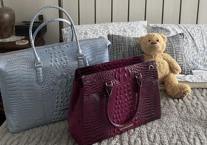 Bought this beauty in Sugar Plum and it makes me happy every time I use it. Fits my laptop, iPad, cords, a couple paperback books and regular purse contents. While it’s not exactly light, my laptop feels perfectly protected and the bag does everything I’d hoped for! I have several Brahmin’s, but this might be my new favorite.