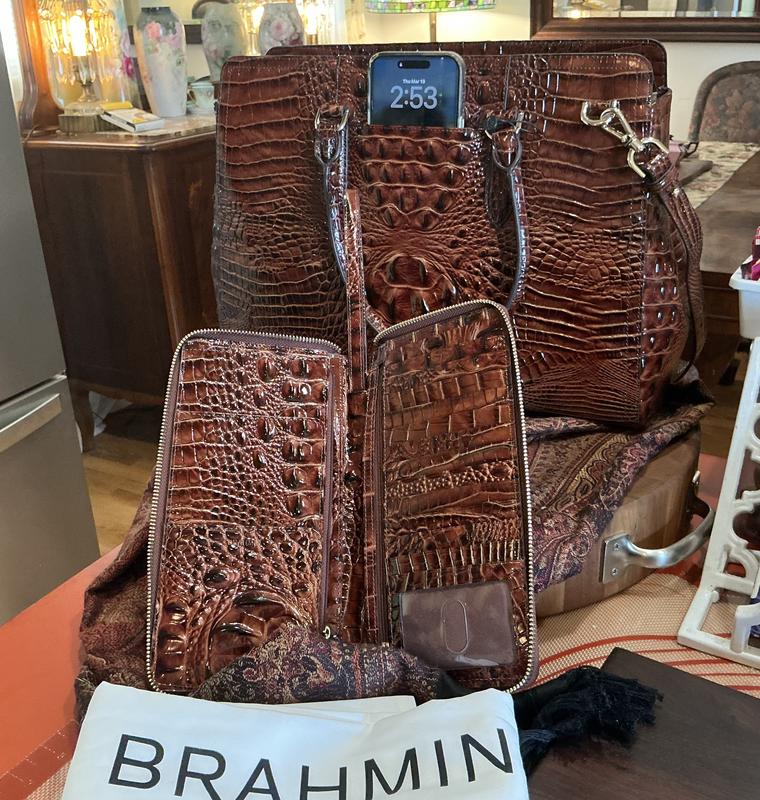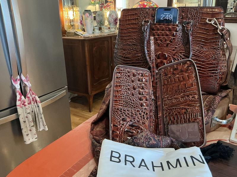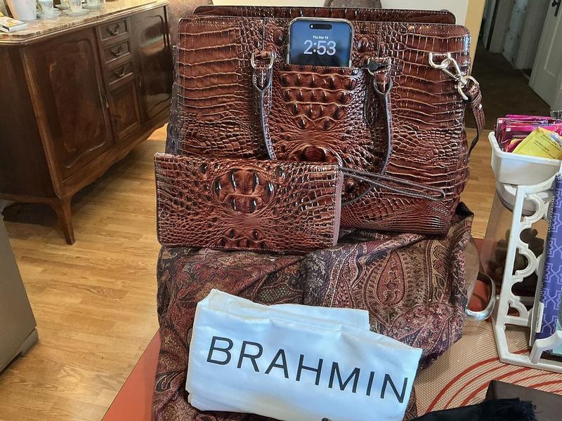 What’s there not to LOVE ⁉️ I’ve been collecting Brahmin handbags for about 15 years. What keeps me coming back year after year is the Brahmin quality, attention to detail, exceptional and thoughtful gorgeous functionality built into every design. I love to travel. I decided to invest in the Brahmin Finley Carryall and compliment it with the Skyler Travel Clutch in the classy, beautiful Pecan color. My Brahmin Finley Carryall is for those long International flights with enough room for my water bottle, iPad, earbuds, book, snack and of course my Skyler. The Skyler doubles as a large wallet with room for your airline tickets, passport, ID, money, credit cards and your iPhone slides right in. It also has two interior zippered compartments for valuables. The ingenious design gives you the option to pull a wrist strap out from the center of the clutch for added security. Once I arrive to my destination, the Sklyer will accompany me on my travels without the added weight. Both the Finley Carryall and the Skyler are my perfect travel accessories❣️