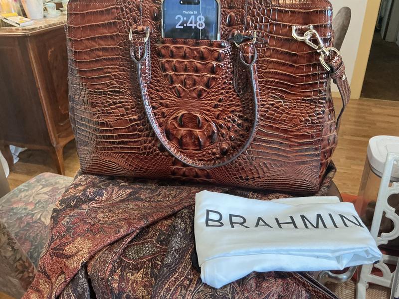 I’ve been eyeing the Brahmin Large Finley bag for sometime. I love to travel and this bag is perfect for those long international flights. It’s big enough to carry my IPad, ear buds, water bottle, and all my essentials for a 15 hour trip. I appreciate the long strap which I use as a crossbody when traveling. I added the Brahmin Skyler Travel clutch, which fits your passport, tickets, money, security Id’s etc, to match, which I also love because once I arrive at my destination, I don’t want to carry a large bag. The Brahmin Large Pecan color is so classy and a welcome addition to my Brahmin collection.