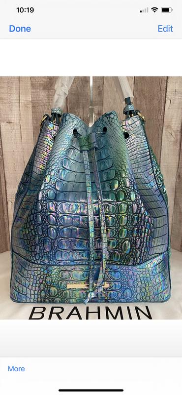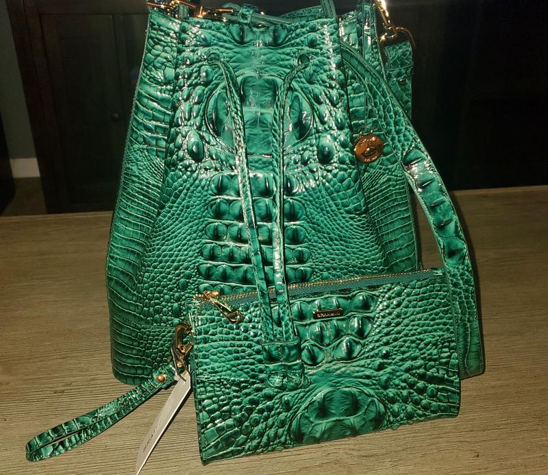 THIS BAG IS GORGEOUS. THE PALE PINK IS SOFT AND FEMININE BUT THE BOLD ACCENTS IN A BRONZY GOLD MAKES IT POP. I HAVE 4 MARLOWES IN DIFFERENT COLORS AND LOVE THE CHIC STYLE OF THIS BAG. IT IS A BUCKET BAG AND HOLDS ALL YOUR ESSENTIALS WITH ROOM TO SPARE. THANK YOU BRAHMIN.