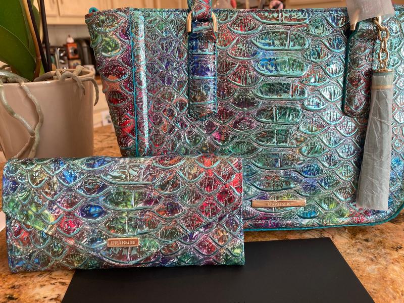 The Frisky Montego is a fun color that is iridescent and changes as it moves. It is of course made with all the quality you expect from Brahmin.