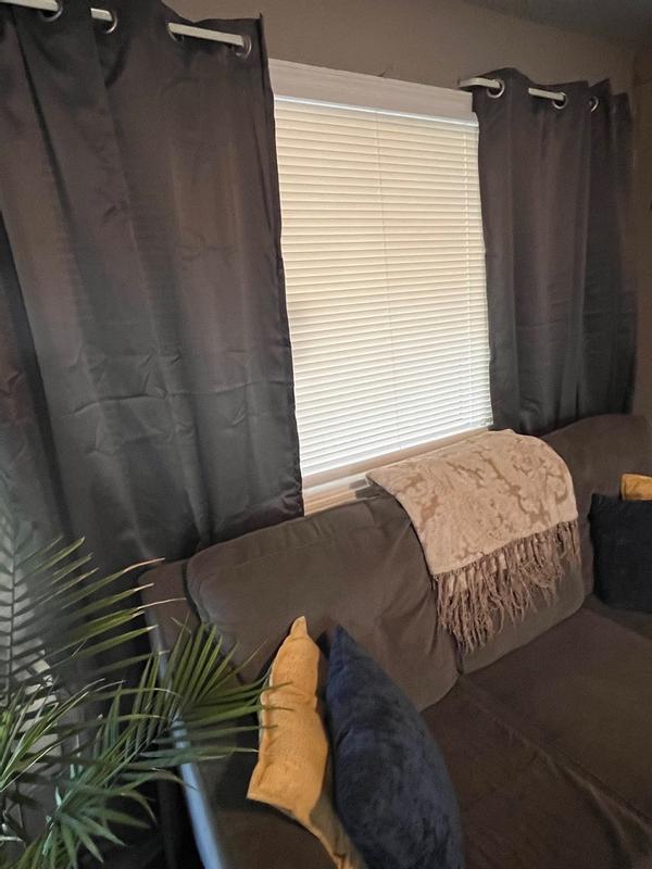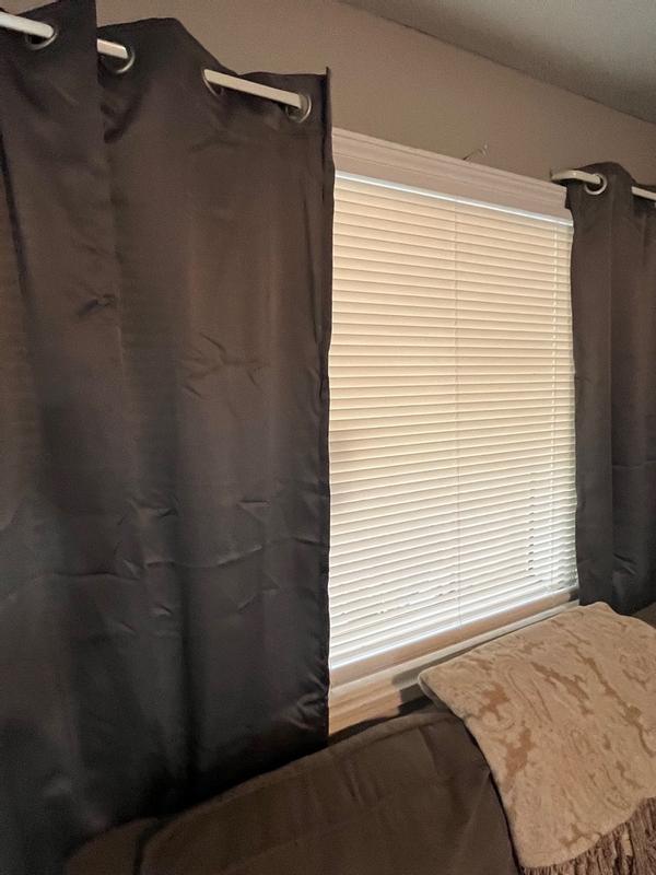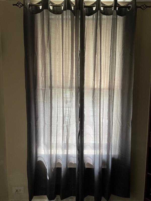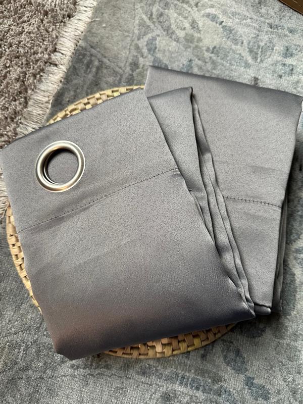 These curtains have since silver grommets and the color is a nice deep charcoal. The grommets make it easy to take them on and off of the curtain rod. They are not black out curtains so some light does peek through. The one negative for me is the quality of the material used to make the curtain itself. It feels a bit cheap, but it’s not an overly thin material.