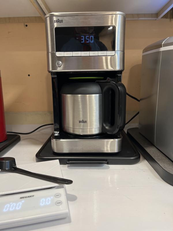 It was time to replace our existing maker. Chose this Braun for design, price and it’s a 10 cup capacity. Easy to use and clean. The machine has different types of cycles in which to brew. Carafe pours easily, never dripping like our old model. Coffee stays extremely hot for hours and never burnt. Brews quietly with a soft ding when complete. I highly recommend this Braun.