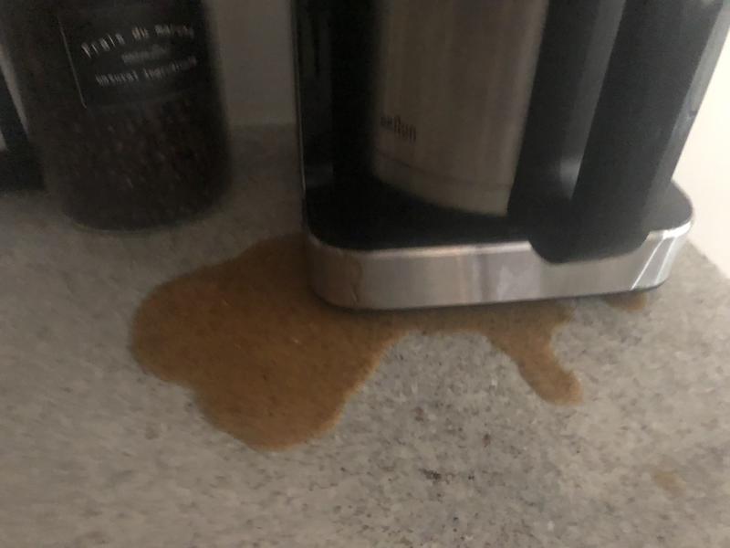The carafe lid dribbles onto the counter every time we pour a cup; and occasionally, as the brewer is making the coffee, it flows out of the maker an onto the counter and into the cupboard below. We received a replacement carafe & lid from Braun, but the new one has the same problems.
