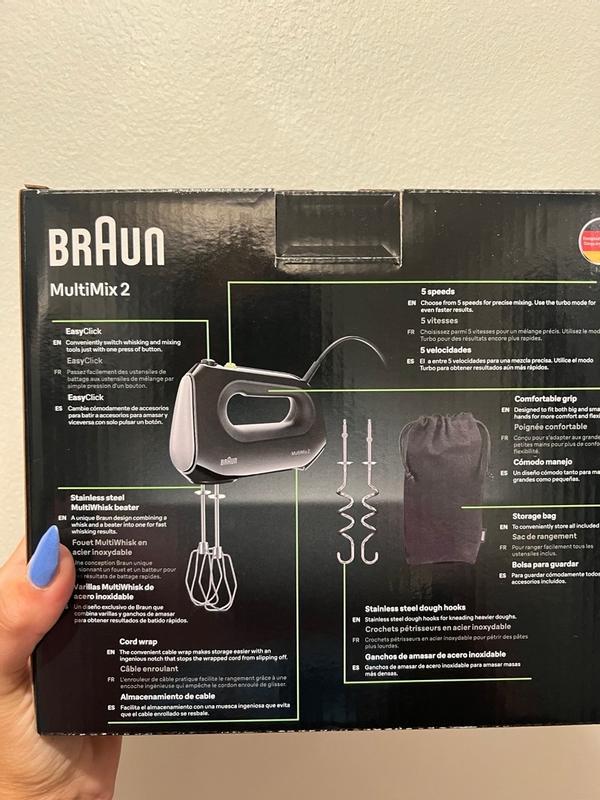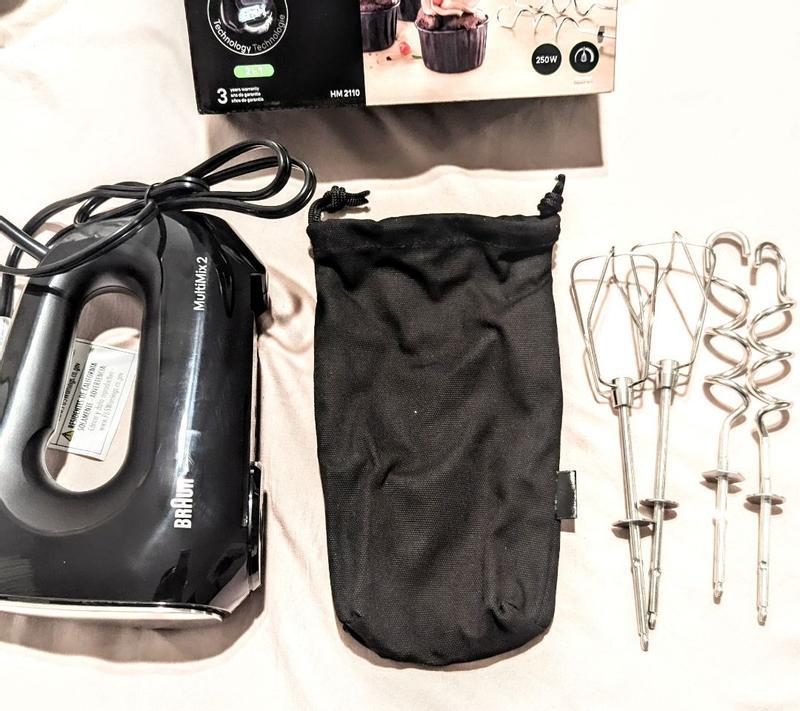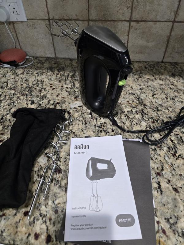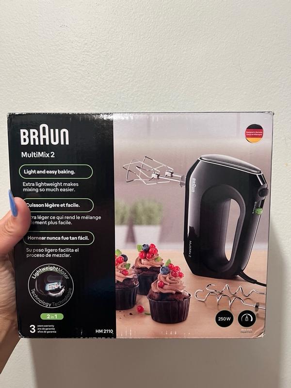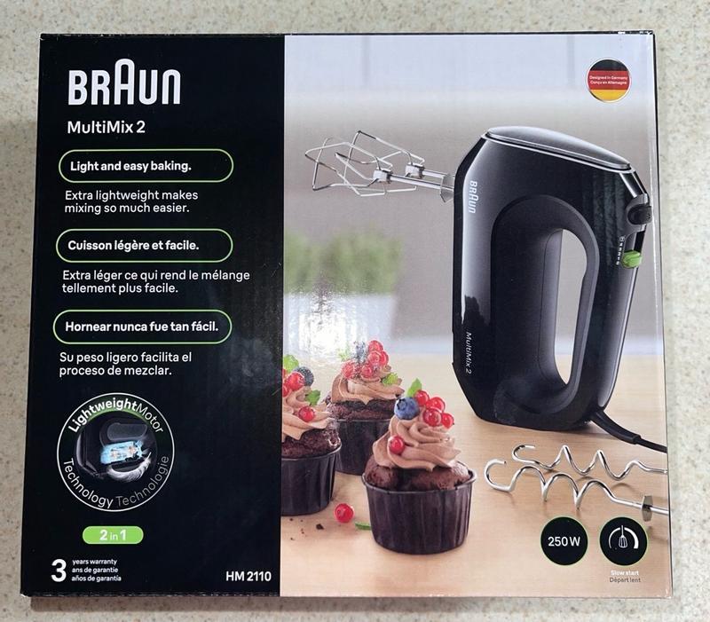 The Braun MultiMix 2 Hand Mixer HM 2110 is a great, easy-to-use mixer. It’s powerful, mixes smoothly, and feels comfortable in hand. The speed settings work well, and it’s easy to clean. It doesn’t come with a storage case, but overall, it’s a reliable and stylish kitchen tool.