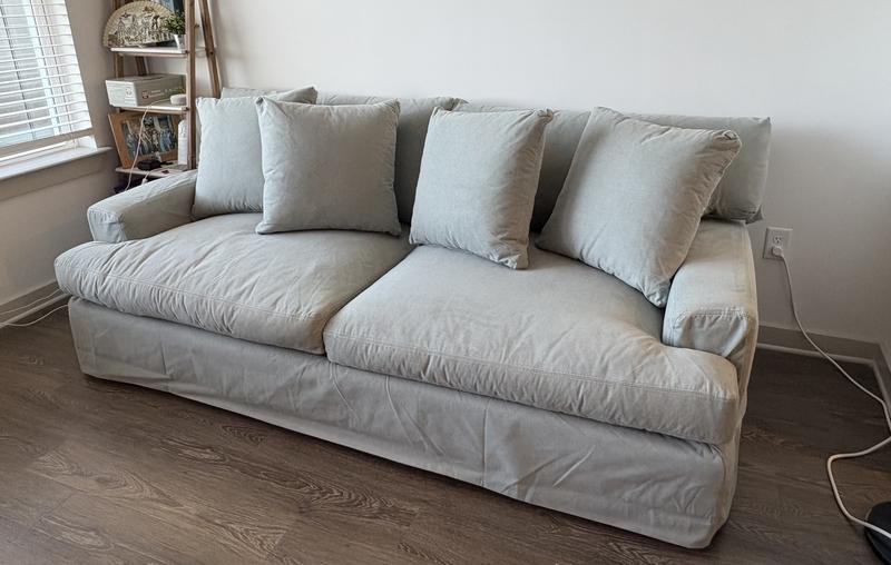 Love this sofa - knew I wanted it when my sister got it almost 10 years ago and had waited until more colors came out. Highly recommend getting color swatches to determine best color, which is what I did (ended up with Peyton Light Blue); although, I had to wait another year once deciding to order since sofa became unavailable after tariffs. Only warning is regarding delivery delays and be sure if you live in an apartment that it can fit in elevator (sofa isn’t broken down in components)- this may no longer be relevant. My order was in July 2025 with multiple delays until eventual delivery at end of Oct 2025. Almost wasn’t delivered because the sofa didn’t fit in my apartment elevator and I had to speak with the delivery management/corporate? to confirm I was ok with them disassembling packaging in the stairwell to carry up to my apartment. Bit ridiculous packaging with limited delivery options given the price of the sofa. Now that it’s in my apartment and worn in a bit, love it!!