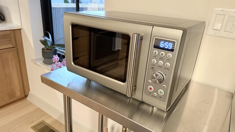 We are Breville fans. A coffee maker, an espresso maker, a multipurpose oven and now this adorable microwave. Because our Breville toaster oven/ air fryer/dehydrator/everything oven does everything, we decided we didn’t need our big giant microwave and this fits the bill perfectly. It’s compact and still holds a full plate of food. We love the quiet door. Bravo.