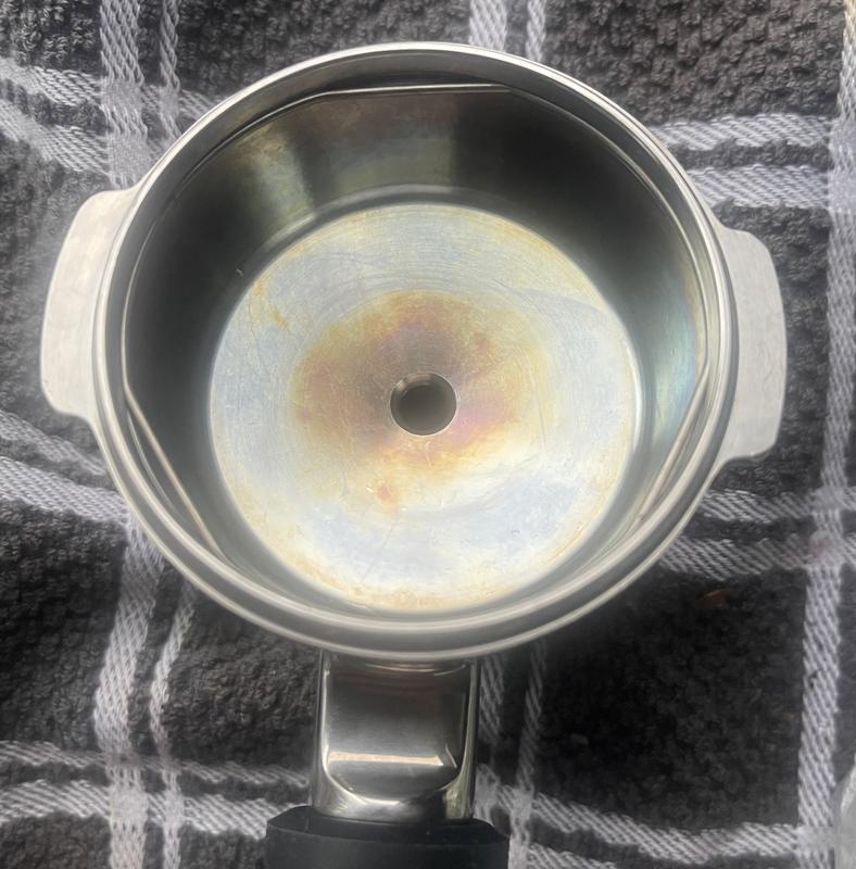 I had high expectations for the Oracle Jet, but my experience has been very disappointing. From day one, the first machine I bought would turn on and off by itself. I initially ignored it and kept it unplugged, thinking it might be related to a setting. After checking all the settings and finding nothing that could cause this, I realized the unit was defective and returned it. I also noticed the portafilter on the first machine looked burned or discolored (see picture). I’ve used another Breville espresso machine for years, and its portafilter still shines, so this was concerning. I exchanged it for a second unit, but right out of the box it’s struggling to grind and won’t brew properly. The grinder starts running, gets louder, keeps running, then stops and produces only a pinch of grounds. When I changed the grind size to the maximum, it finally filled the basket, but the tamping was completely off. For a machine at this price point, these issues are unacceptable, and quality control seems to be a serious problem. I may try a third replacement and give it one more chance, but so far this has been a frustrating experience.