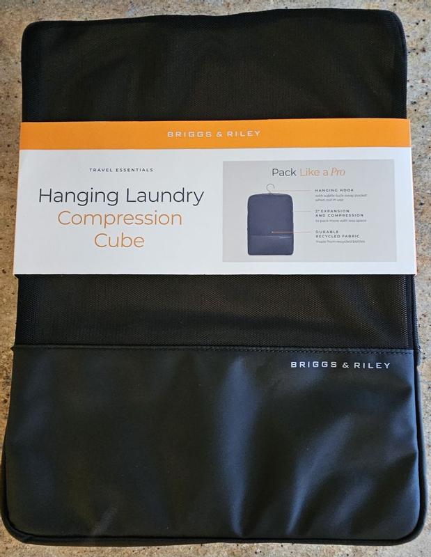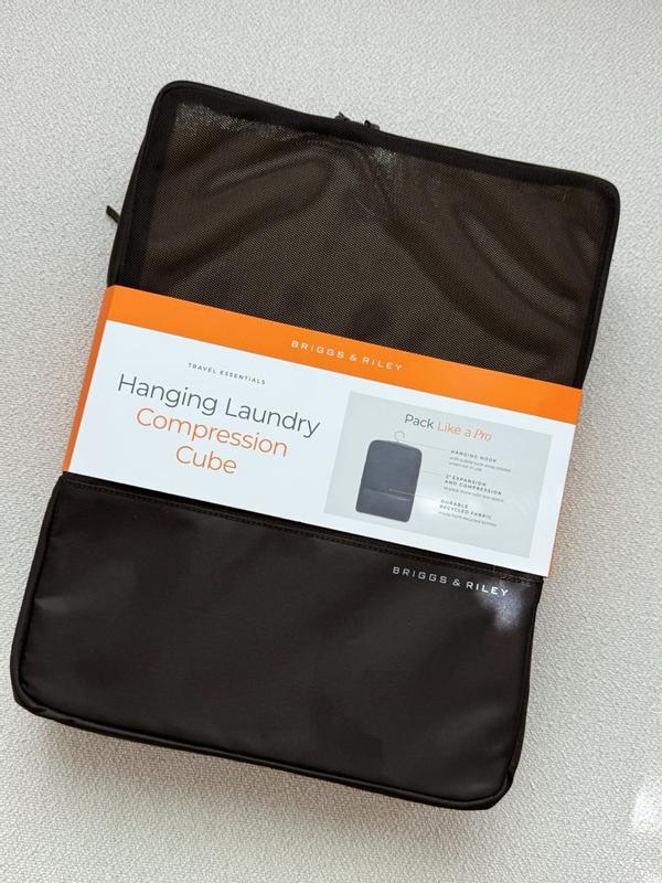 The Briggs & Riley Hanging Laundry Compression Cube This is a surprisingly practical travel companion. Its expandable design adds up to 2 inches of extra capacity, which is perfect for longer trips or heavier laundry days. The zip-around compression works smoothly and helps keep luggage organized and compact. The tuck-away hook is a smart touch, making it easy to hang in a closet or bathroom and drop in laundry as you go. Its large, versatile size also doubles nicely as extra packing space for clean clothes on the way out and used items on the way home. Durable, functional, and well-designed, great for anyone who likes efficient, clutter-free travel.