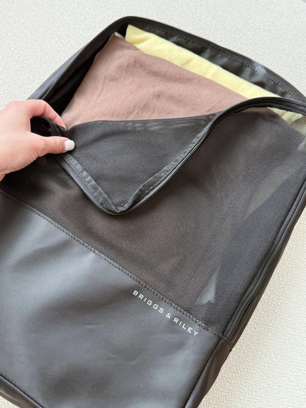 I love how this compression cube helps make packing easier. It’s great how you can use it for your dirty clothes on the way home keeping them separate from clean clothes. It gives you the ability to pack more and be more efficient. It’s made from very durable material and the stitching is solid. Briggs & Riley really put thought into this item. I am very pleased with this piece and will be buying them as gifts for my family.