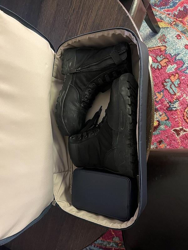 I’m super excited about this tote. I’ve been trying to find a bag where I can keep my steel toed work boots separate from everything else and it’s been a real struggle. I needed something that could carry a laptop, a change of clothes, toiletries, and a few other odds and ends. After some heavy online searching, I came across this bag. I did a trial run and everything fits. Will report back in a few weeks after some heavy use.