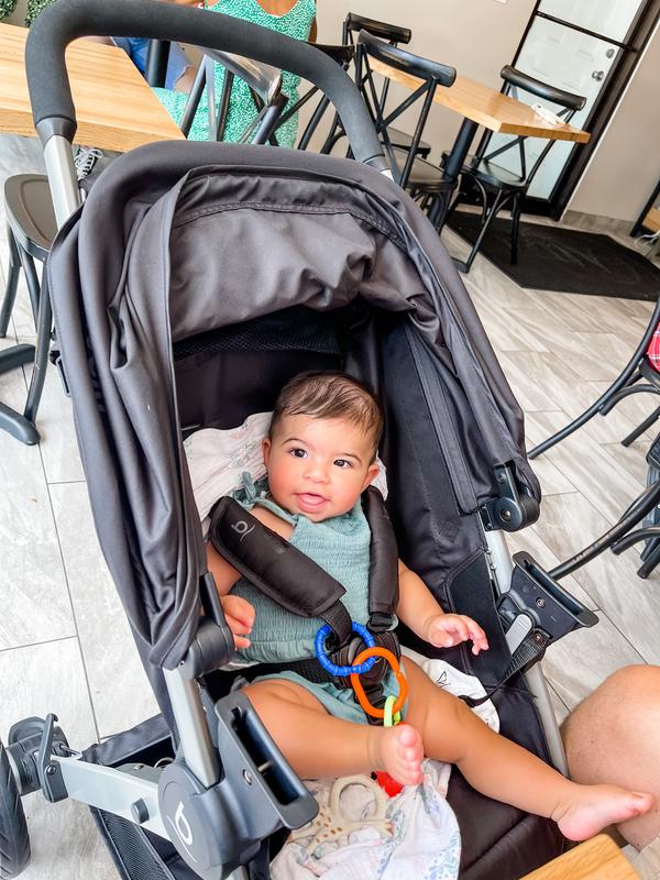 By all appearances, this seems like a nice travel system, but it did not work well for us. Immediately after getting this travel system, I adjusted the car seat to fit my six-month-old son. I popped him in it to try it out, and it was like stuffing a sumo wrestler into a unitard. This car seat seems quite narrow and while he did fit, I tried to buckle him and could not easily fit my hand beside him to grab the bottom buckle. He seemed miserable, and it was a tight squeeze for me to locate the buckle and make it work. Therefore, I never installed the car seat into the car, nor did I try it out in the stroller. The stroller itself is decent but could use some fine-tuning. The best things about it are the smaller size (fitting into my trunk more easily), how well it navigates on all sorts of terrain, and the canopy that stays open at two different points for more or less shade. The downsides to this stroller include that the basket underneath is pretty small and kind of useless, it comes with no cupholders, and after about ten times folding it up, it now gets stuck and requires two hands and at least a moderate level of frustration to get it to close. If it came with a couple cupholders and the release to fold it didn’t jam up, I would probably feel much more warmly about the stroller. Thank you to the Stellar Product Testing Panel for providing me with this travel system to try out.