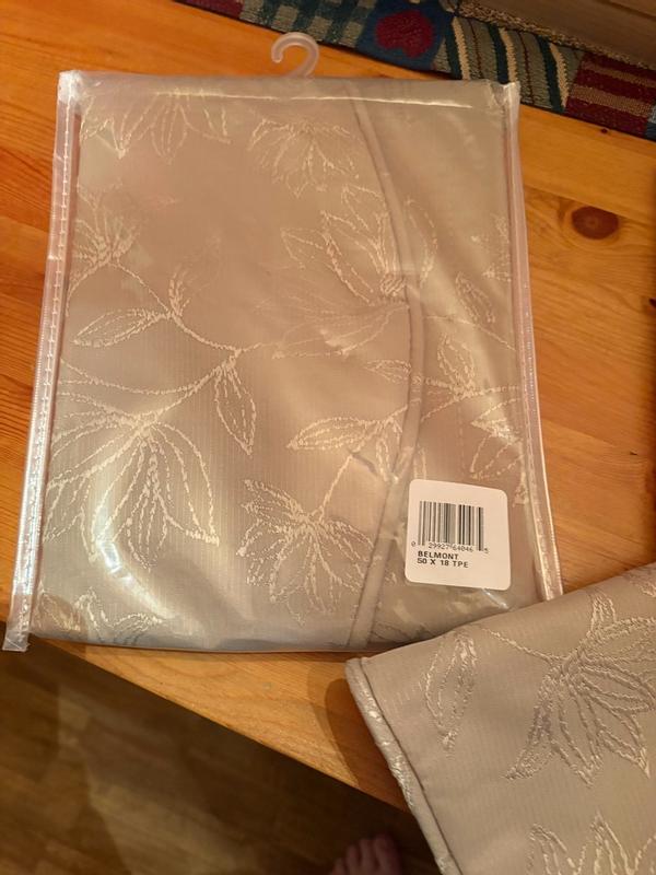 Material I had a heavy feel to it I wasn’t a big fan of the design and didn’t work out in the room I wanted them in. The color was just a little too dark .I think it it was a different color they would have added great look to the room. Would purchase in a lighter color and different design.