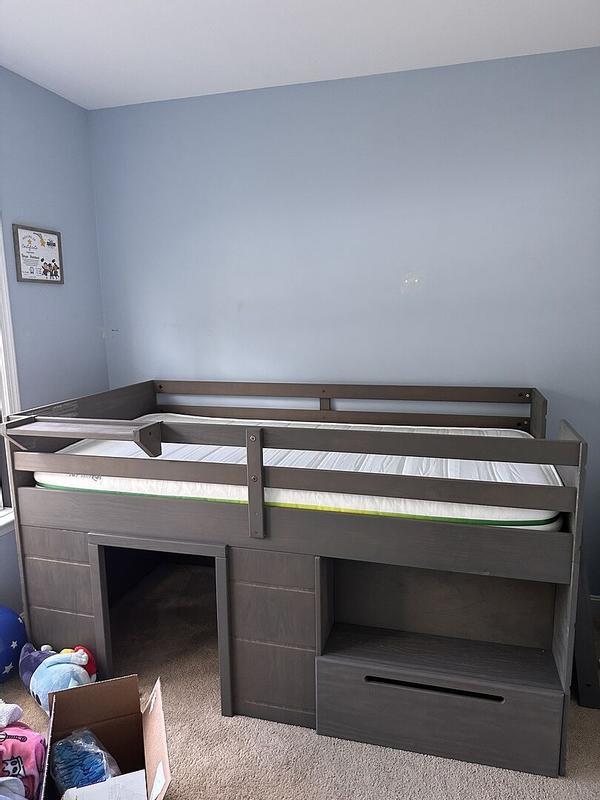 I am very happy with the bed… My grandson seems to like his new bed also. . I am really happy about how you turn the mattress over depending on there age. . So far everything I have bought from this company I am satisfied with.