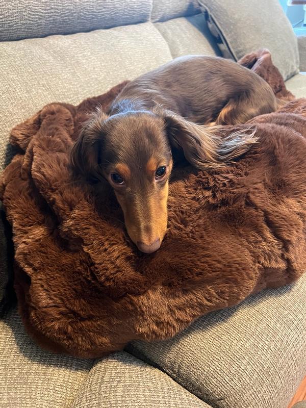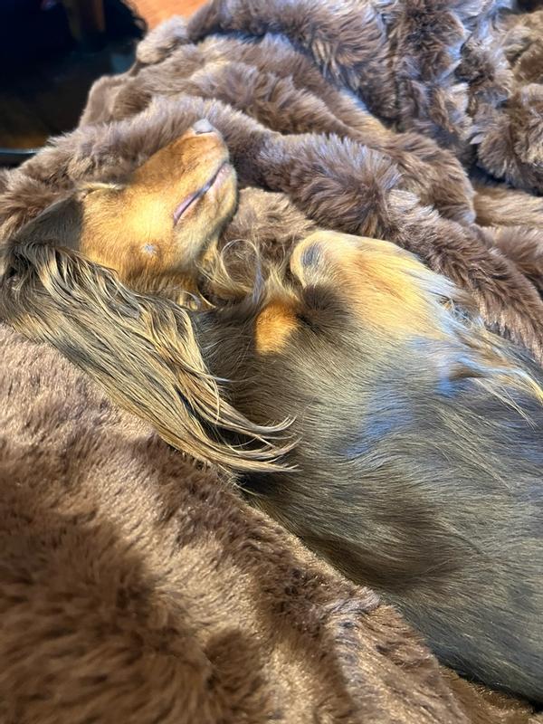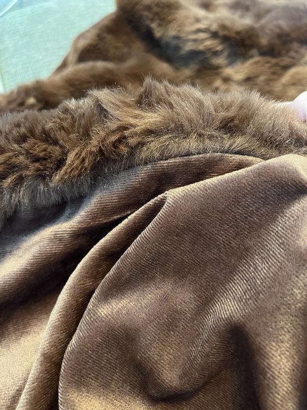 This blanket is very warm and fuzzy. I love how comforting it is. The faux fur is very luxurious and makes me feel like I’m up at a mountain lodge rather than just sitting in my apartment! It’s very large, comfortably fitting over my full size mattress. Only thing I don’t love is that there is quite a bit of shedding from the blanket. Otherwise, it’s wonderful!