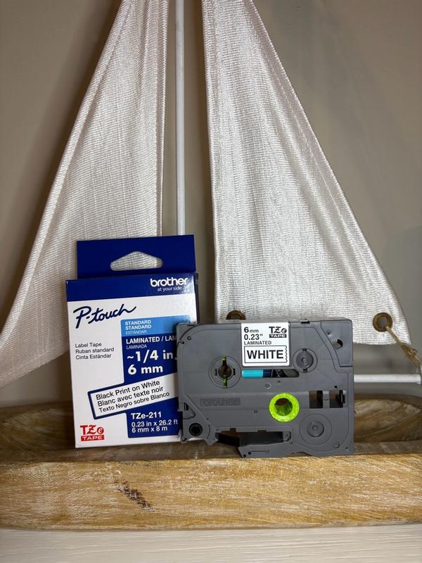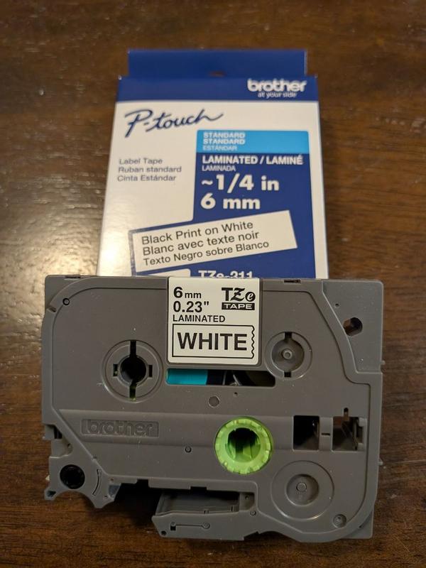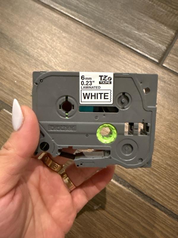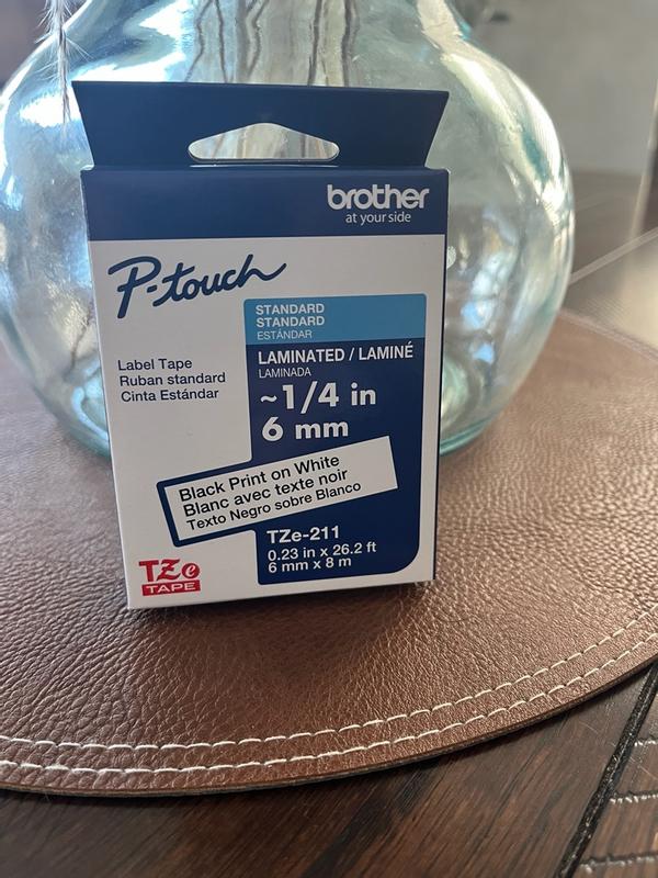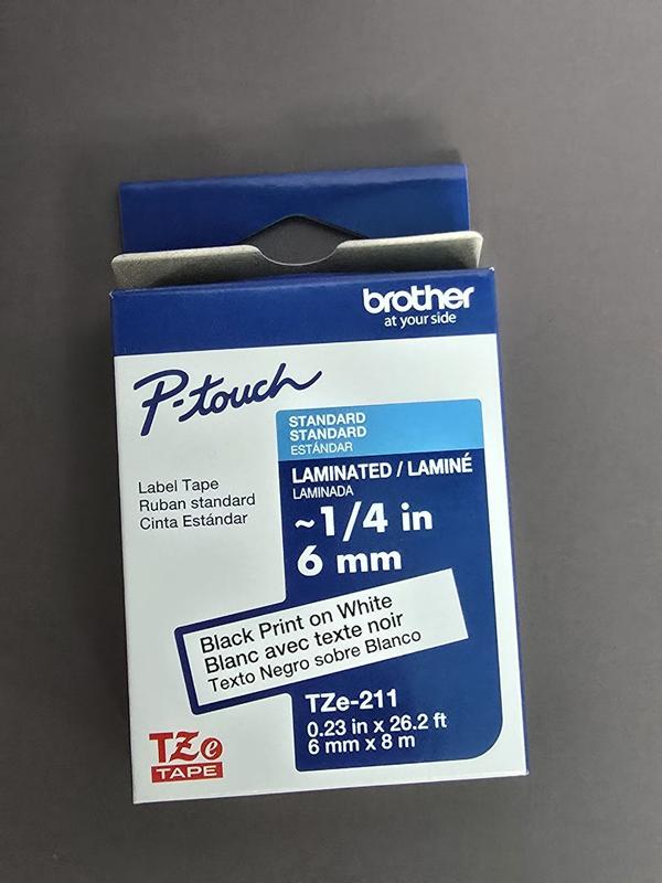 I received the Brother P-Touch TZE211 tape. The print looks super clear and sharp, and the contrast of black on white makes the labels very easy to read. I use it to organize cables, jars and papers, and the adhesive sticks very well to all kinds of surfaces. In addition, it does not take off or erase over time, which surprised me a lot. The 1/4" size is perfect for small labels, and I like it to look clean and professional. In general, it is a practical, resistant and excellent quality tape. Totally recommended if you like to keep everything tidy!
