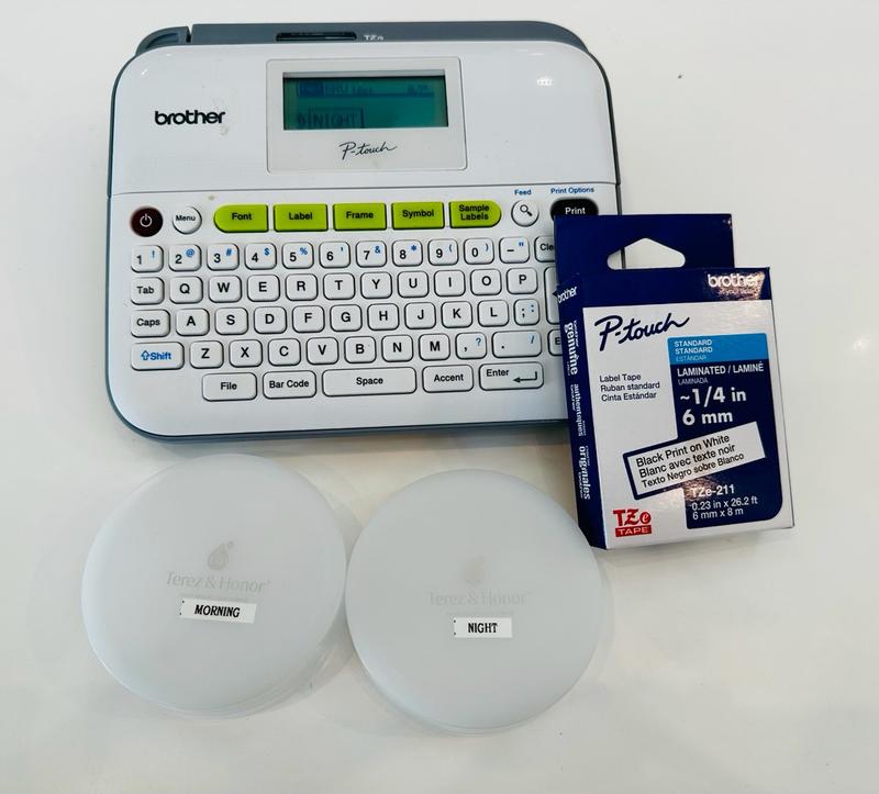I love labels and you simply can’t beat Brother P-Touch labels! They are the best and easiest to use, come in a wide range of sizes and colors making it simple to organize and label everything in your life. You will find crisp text that won’t smudge, fade or rip! The labels are easy to read - even in the thin ~ 1/4 in 6mm tape. Makes labeling my travel sized items a breeze.