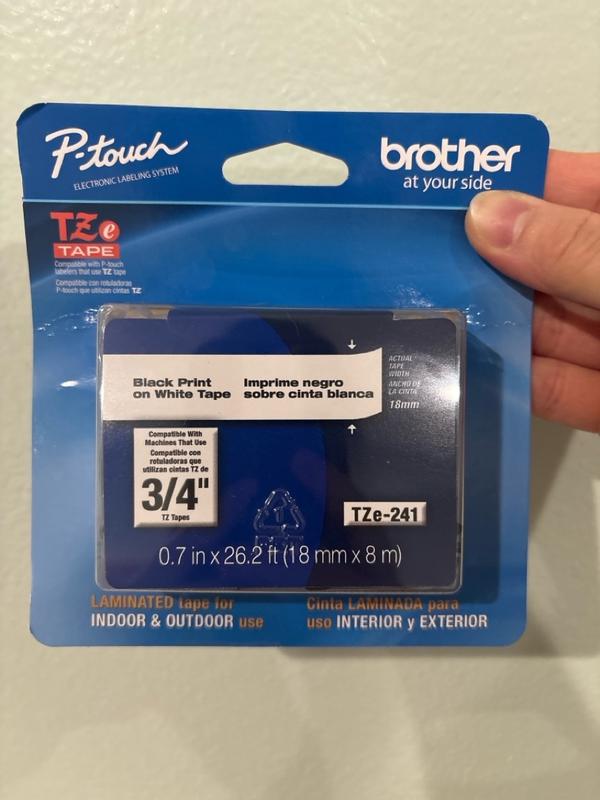 This TZE241 Black on White tape is a reliable choice for anyone using a P-Touch label maker. My office is currently using this brand as well. The black print on white background as well as the 0.7” wide makes the text clear and easy to read. The adhesive is pretty strong and can be stick to many surfaces. The length of 26.2 ft is perfect to last for long time before replacement.