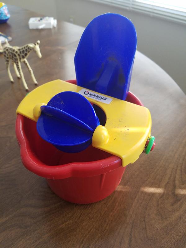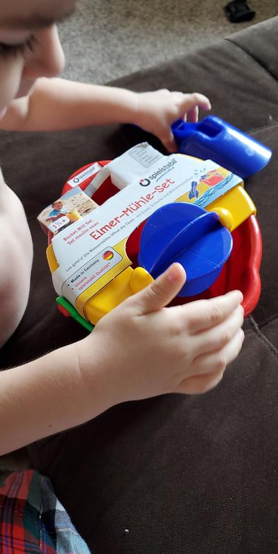 My son tried this product Spielstabil Bucket Mill 3 Piece Toy Set - Includes Bucket, Sand Scoop and Spinning Wheel and it was very funny when we went to the beach because he was playing with the sand and filled his bucket with his shovel, it really is fun and the material is very good very resistant