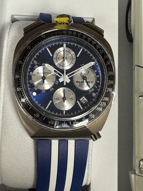 Web ID: 23623272The Shelby watch from Bulova is a limited edition timepiece designed with HPQ Precisionist movement and finished with a sporty, two-tone rubber strap for comfort.