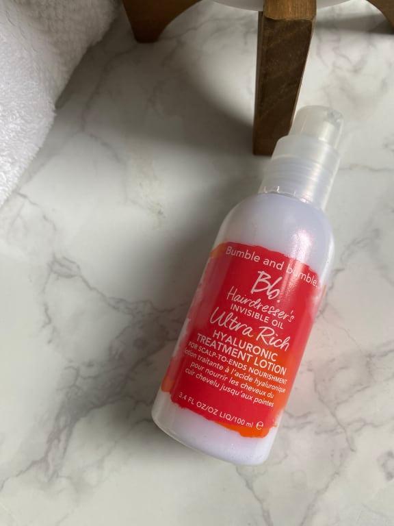 Day 2 hair secret weapon. This lotion does a great job of taming my fine and frizzy ends. Side sleeper hair fix = B&B dry shampoo and this Hyaluronic lotion.