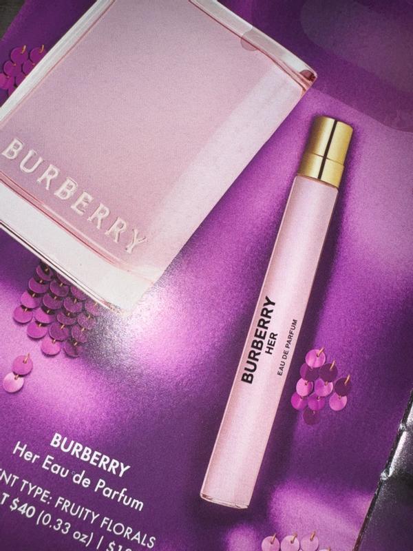 Burberry Her EDT is a very sweet and white floral scent. If you've ever smelled No.4 Candy, this smells similar to it. I would wear this for a garden party in the summer or an outdoor activity. It doesn't have the highest concentration of oils, allowing it to last at least 4 or 5 hours before it's just a skin scent. Simple and elegant!