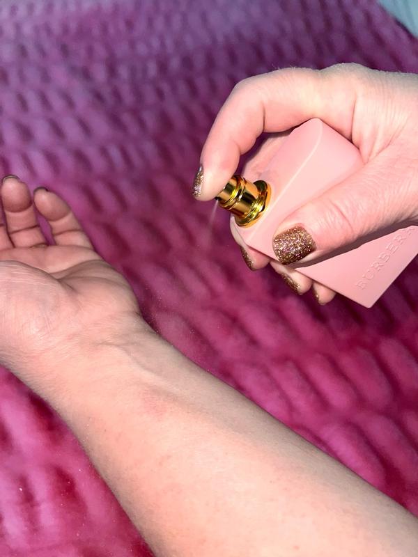 My first impression of the opening burst was sharp, sweet, fresh and floral with a hint of cherry chapstick. The fragrance is warm the strength of the scent fills the room but after 10 minutes it settles into a warm cherry chapstick scent that settles into the skin and is barely noticeable. Is perfect for any occasion or the office if allowed to wear scents at work. The bottle comes in the cutest pink color but looks very similar to a vape . I love Burberrry and most of their fragrances, but I’m not a so fond of the smell of cherry chapstick and this is what this reminds me of.