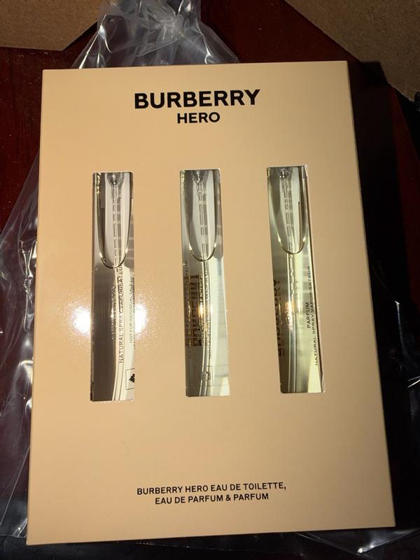 Love this Burberry Hero set! It’s great to try all three versions — Eau de Toilette, Eau de Parfum, and Parfum. They all smell amazing and last well, but the Parfum is my favorite. I’ll definitely be getting a full bottle soon. Great packaging too — perfect for travel or gifting! This was my first time seeing all three and one package and that size I think the value is perfect for that price.