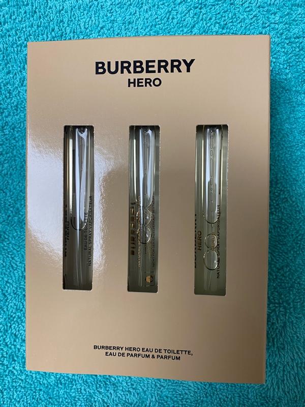 The Burberry Hero Trio Cologne Gift Set is hands down my new favorite. The quality is superb and it works great. The packaging is perfect for on the go use. I really like that the set includes a variety trio of Burberry Hero Eau De Toilette, Eau De Parfum, and Parfum travel sprays that are 0.33 oz. each. I think it's great that this collection features intense and invigorating fragrances based on a trio of cedarwood oils that balance strength with refined elegance as well. I highly recommend this product!
