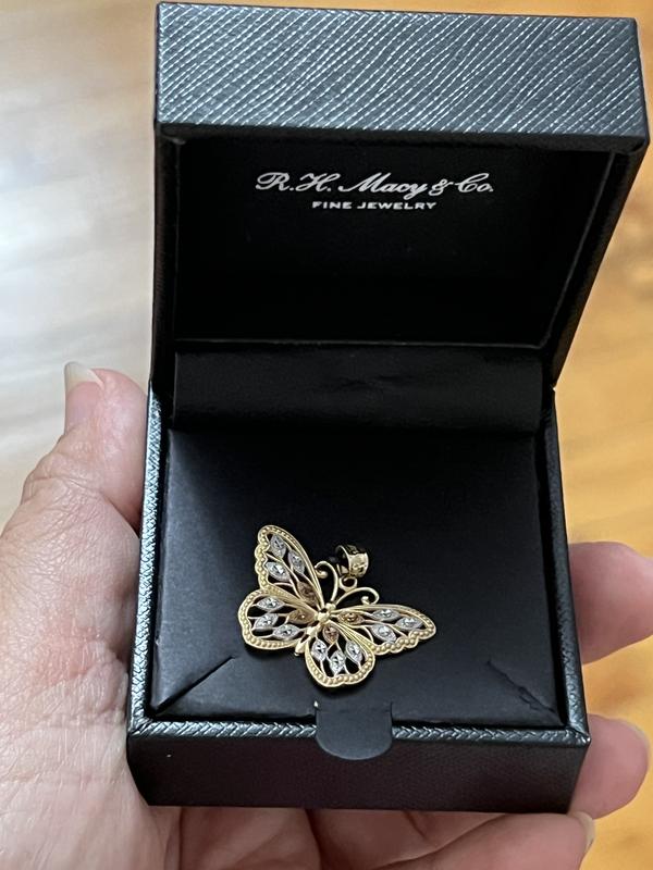 Butterfly Diamond-cut Charm in 14K Yellow Gold with White and Rose Rhodium