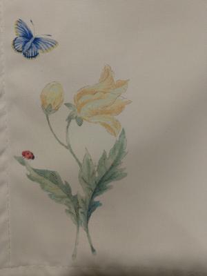 The hem on the tablecloth was not sewn properly, leaving frayed fabic. I should have repaired it by hand, but I glued it instead. Now it has a glue stain on it. I buy many Lenox products and sometimes the quality is hit or miss.