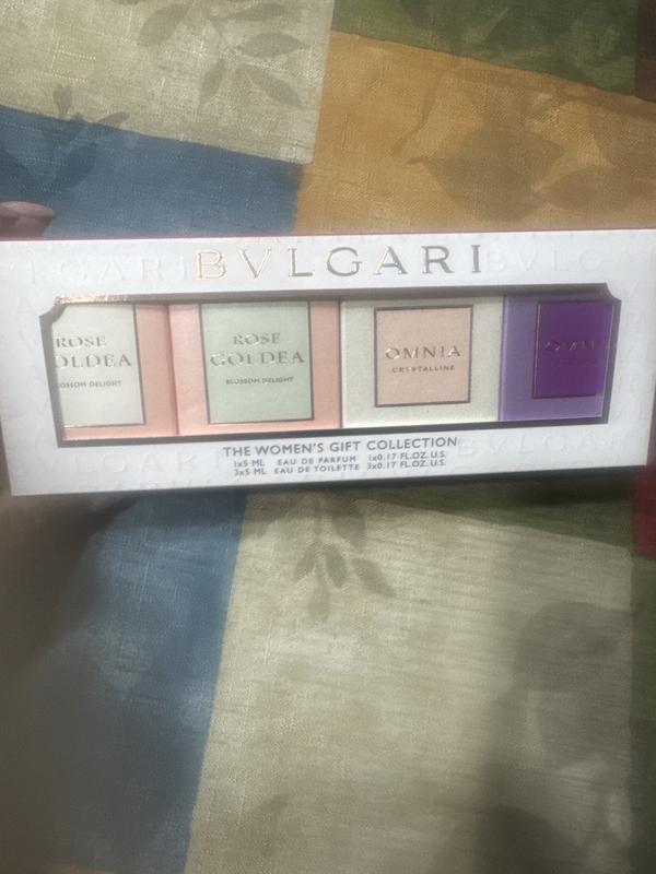 - Rose Goldea Blossom Delight Eau de Toilette, 0.17 oz.; Rose Goldea Blossom Delight Eau de Parfum, 0.17 oz.; Omnia Crystalline Eau de Toilette, 0.17 oz.; Omnia Amethyste Eau de Toilette, 0.17 oz.