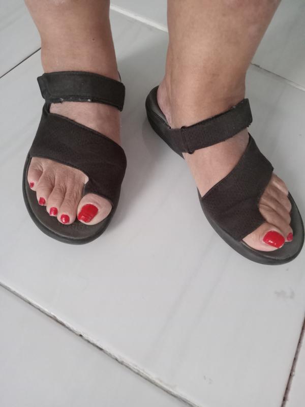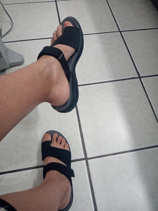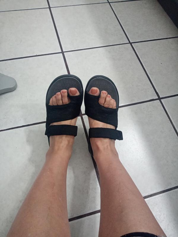 These sandals are just okay as they don't have enough velcro on the top strap for those of us with narrow feet.