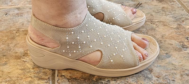 I bought this in the nude/sand color and love the color. I have wide feet and purchased the 7.5 Medium (because it was my only option) They were a perfect fit and overall feel like walking on a cloud. There are two things I don't love about the shoes. #1) They are hot to wear. The insole is a rubber material and my feet get very hot & sweaty wearing them. #2) While there is more "arch support" than many other styles of BZees, the arch support is not quite enough for my liking.