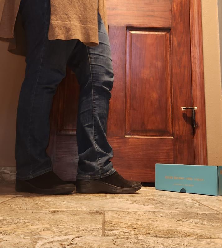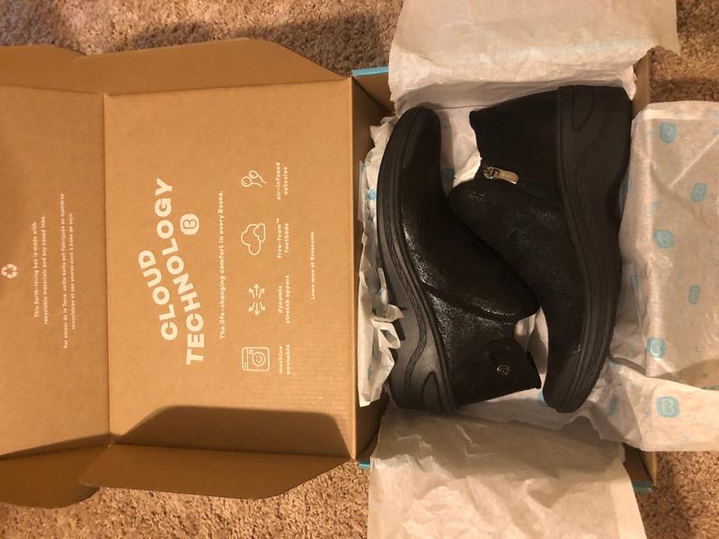 The Bzees Domino boot is my favorite pair of boots because of the unique coloring, fit, comfort, style, and lightweight, walking-on-air feeling that I get when I wear them. They are a medium width, but still have comfortable stretch for my wide width feet.