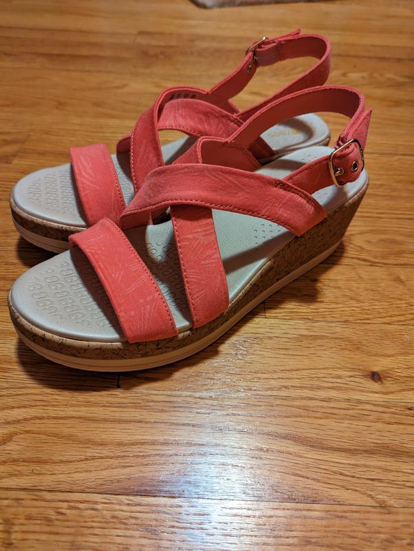 I love the style, and they were very comfortable, EXCEPT for the straps going across the top of the foot. As with several other BZee sandals I have tried, the straps are just too short to fit comfortably over a high-arched foot. The edges left marks on my skin and there's no way I could wear these for very long.