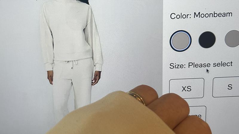 I bought the Moonbeam, thinking it was more of a white/cream color. Don't look at the picture of the model in "white" nor the circle swatch: Moonbeam is neither. More of a light yellow/beige as pictured here. Also, the pants are short. It's cut to fall at the waist but if you look at the picture, you'll see that the model is shown with pants pulled down to the hips, giving the appearance of more length. With this said, I'll keep it because it is comfortable and the piping and wrist gathering details are of high quality. Just good enough for home only and bought on sale.