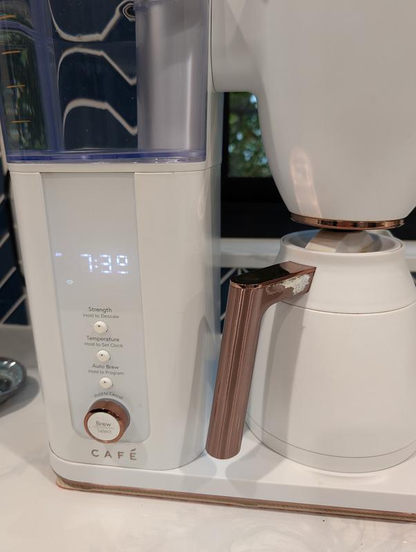 The coffee maker is beautiful and pairs really well with the other matte white appliances. However, I'm on my second one and won't be buying a third. The lights have gone out in part of the clock, and the carafe is peeling and has water sloshing around despite never being submerged.