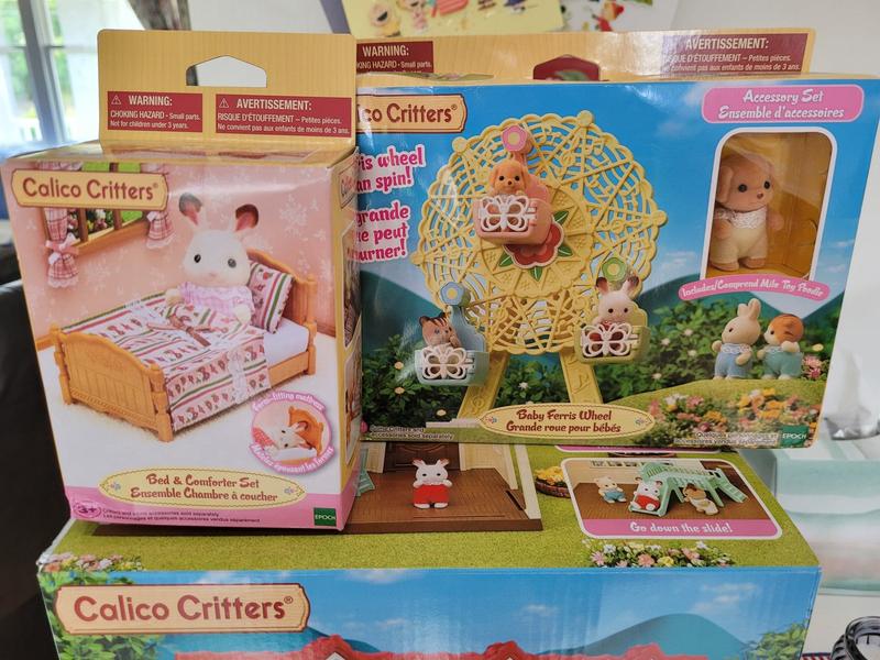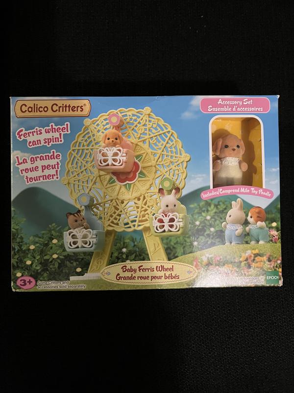 This ferris wheel is the perfect addition to any calico critter collection. It's perfect for the babies and it even come with one. As with anything calico critter is easy to setup and fun to play with.