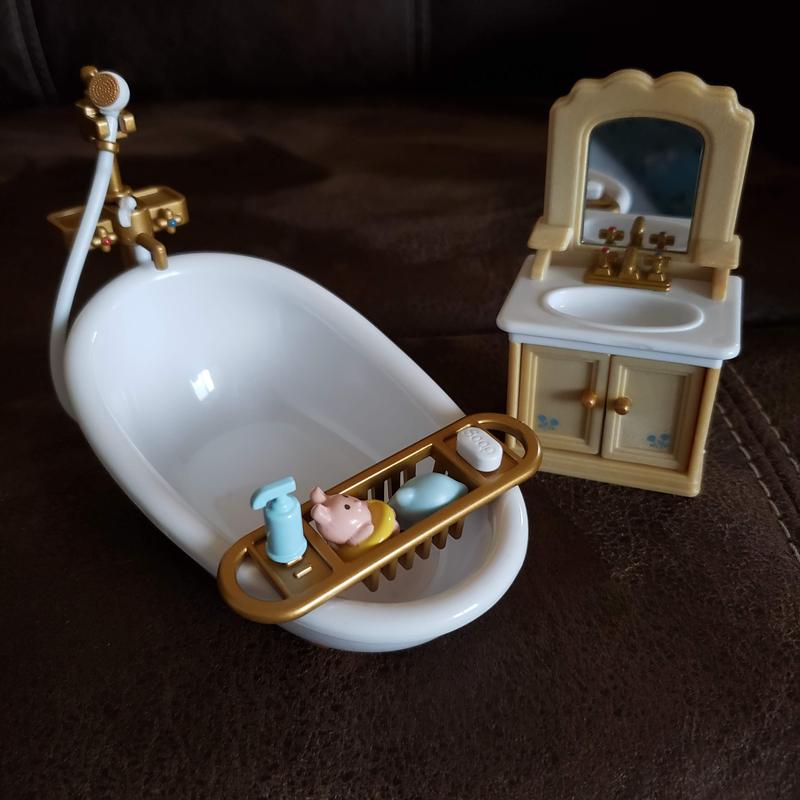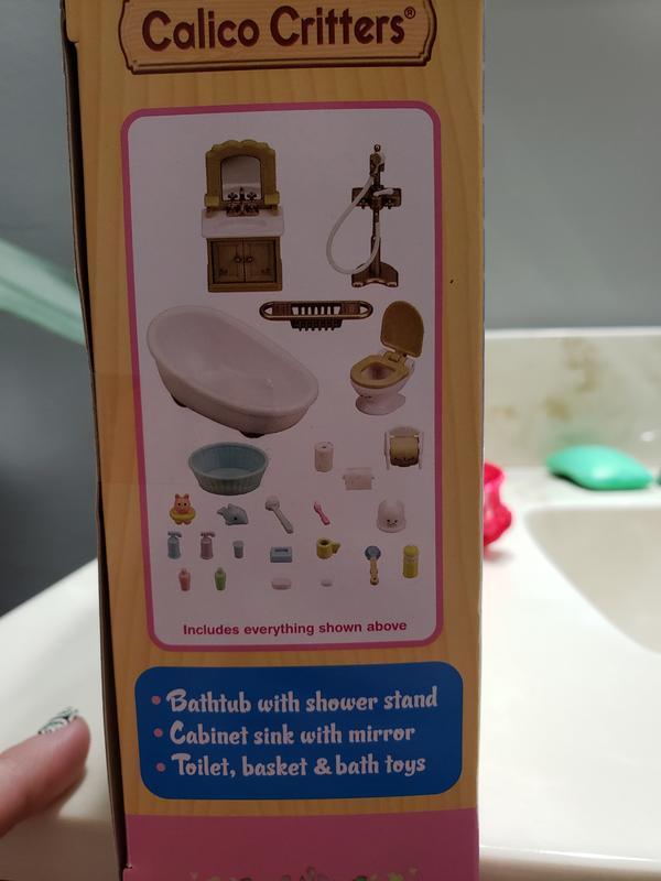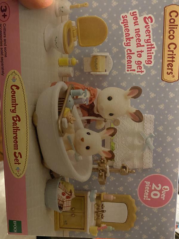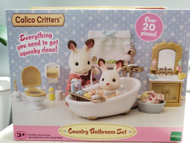 The country bathroom set matches perfectly to the other critters collection. Tiny pieces but very detailed. My granddaughter absolutely loves her set and uses it quite often with her critters. Not as sturdy as I thought but perfect for little, gentle hands.