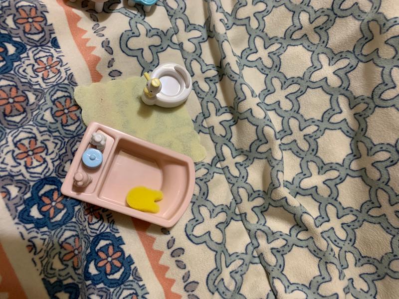 My daughter enjoys Calico Critters and this set is no different. The bath set is super cute and she loves to play with them in her dollhouse. The pieces are very small which is why I was surprised to see the recommended age as 3+. In my opinion, this is not suitable for children that small. I am worried about having the pieces around my younger child so I have been storing the pieces in a bag and only letting my daughter play with them when my younger child is not around.
