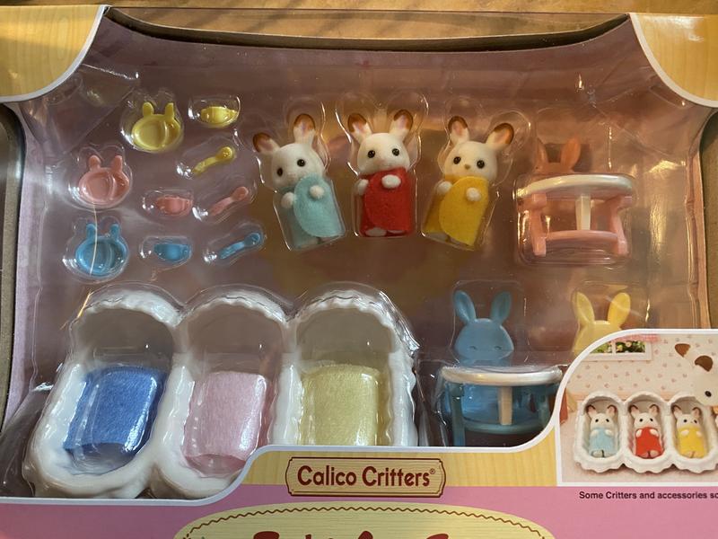 Triplets Care Set, Dollhouse Playset with 3 Figures and Accessories
