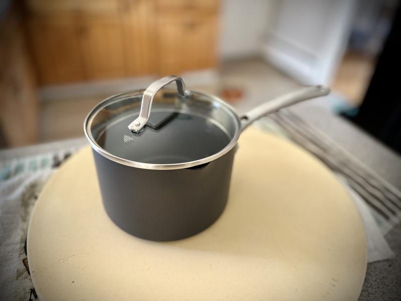 I’ve been really happy using this Calphalon sauce pan. It heats up quickly and cooks very evenly, which makes it great for everyday meals. The nonstick coating works really well — food slides right off and cleanup is super easy. The pan feels sturdy and well-made, and the handle stays cool while cooking. It’s a good size for sauces, soups, and quick dishes, and the lid fits securely.