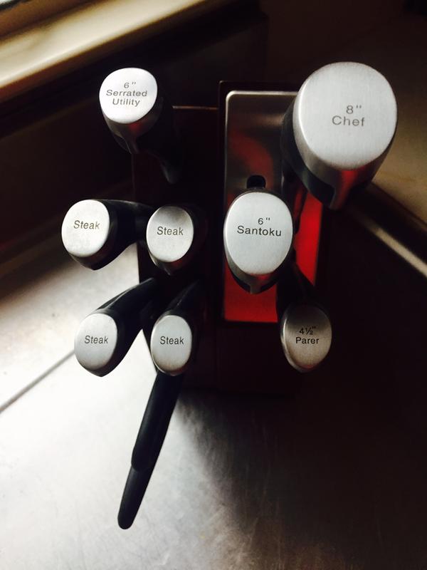 In a day and age where space is at a premium, it's nice to be able to have a well known brand product that delivers. I love the space-saving aspect of this knife block and the Maplewood finish is great. The knives appear sharp right out of the box and the built-in sharpener is a great value by itself.