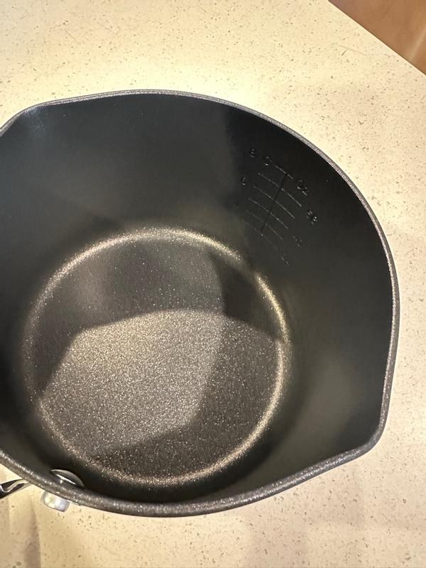 Wonderful saucepan just like all my other Calphalon cookware. Even cleans up after burned on cranberry sauce. I prefer Calphalon because it is lighter than major brand. As a senior woman it is much easier to handle.