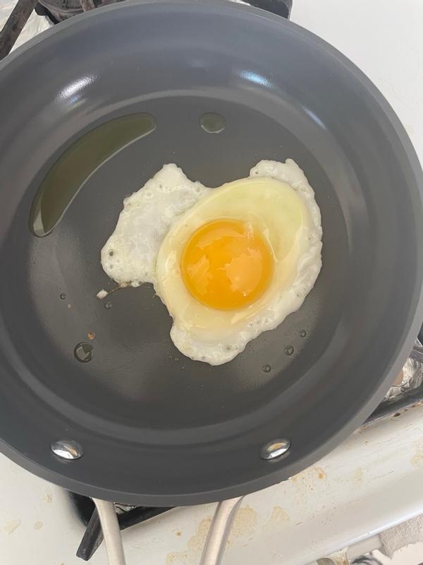 I have used the hard anodized fry pans for years. This year I needed to replace them (this would be the 3rd set I have had) and decided to try the ceramic ones. They are horrible - I have only used both once and these stick, even though I cooked the same as the old ones.
