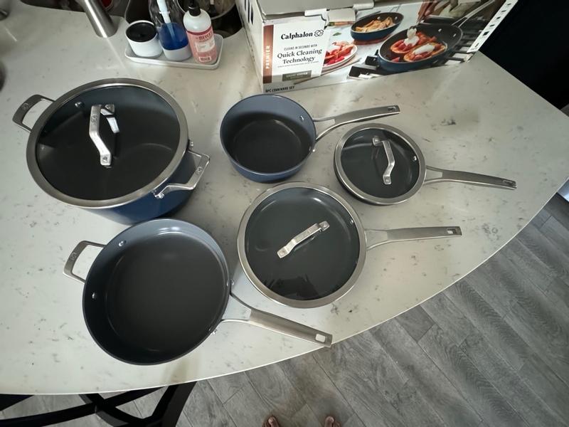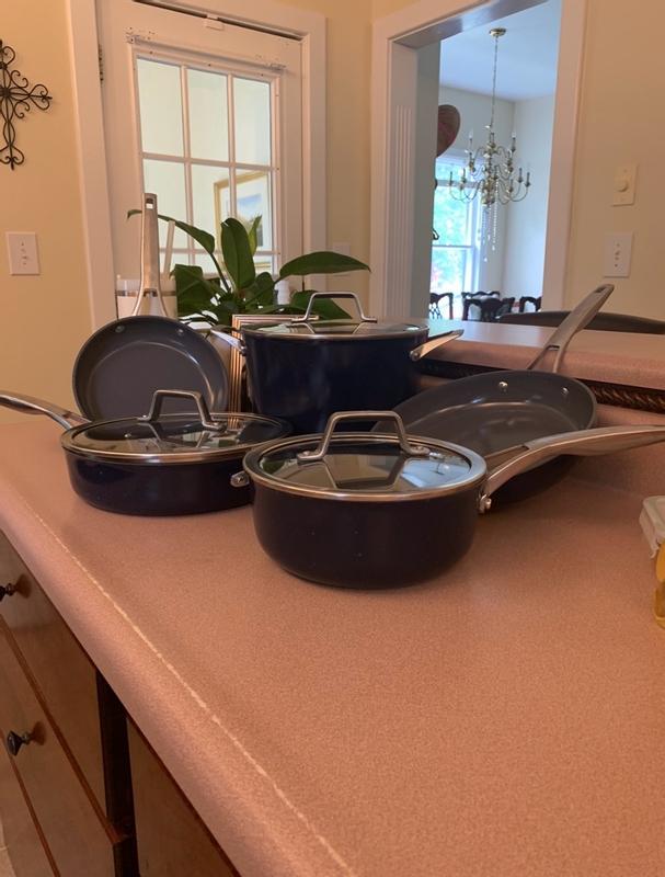 Love these new Calphalon pots and pans. They look beautiful in navy blue and make cooking and cleaning up so easy